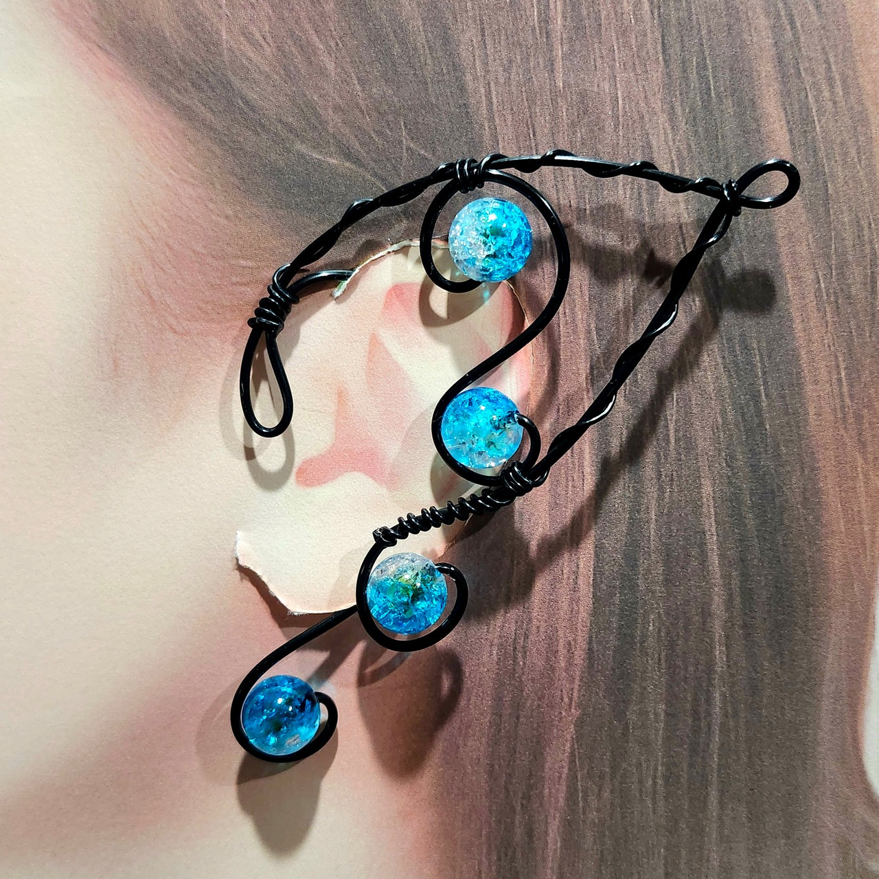ワイヤーを使用して制作した片耳用のイヤーフックになります。