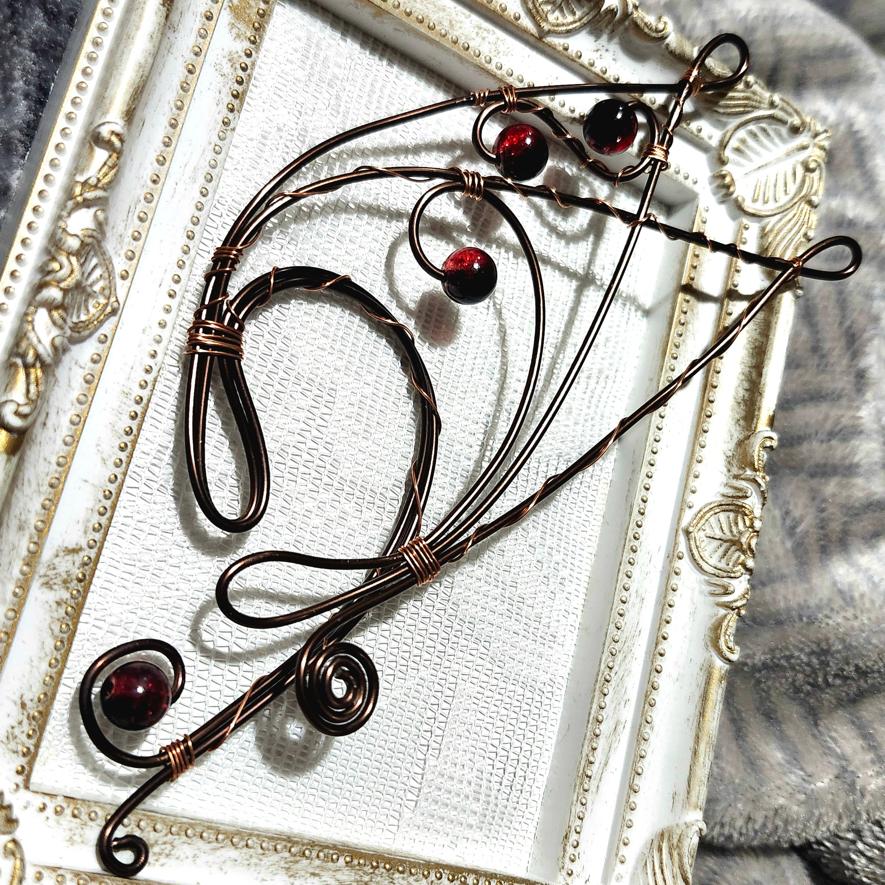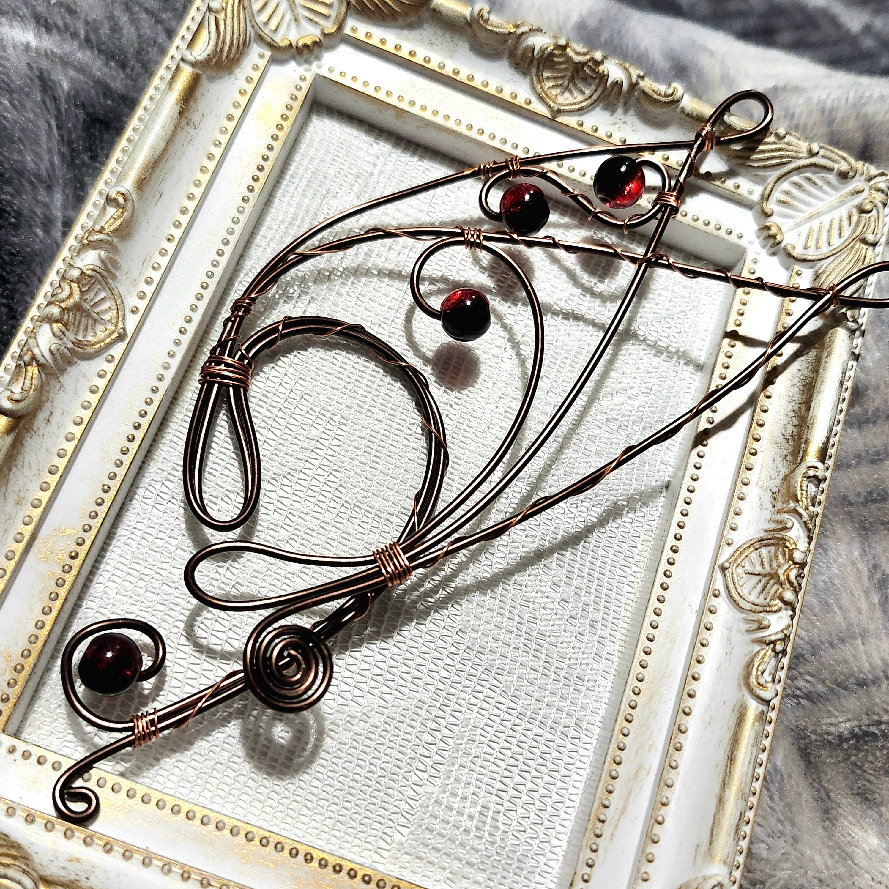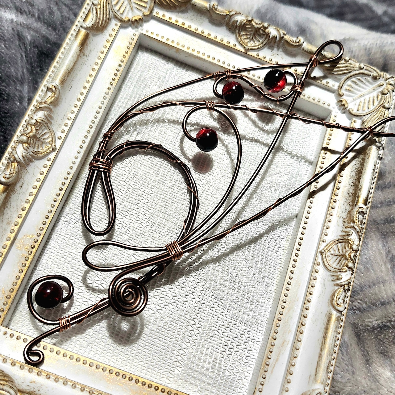 こちらのワイヤークラフト作品は酸化により変色しやすい作品です。使用後は乾拭きにて油分を拭き取るなどして頂くと比較的長持ちしますが、それでも変色は避けられない作品になります。変色後は基本的にワントーン落ちたアンティーク調の落ち着いた色合いとなりますので作品の変化も含めお楽しみ下さいますようお願いします。