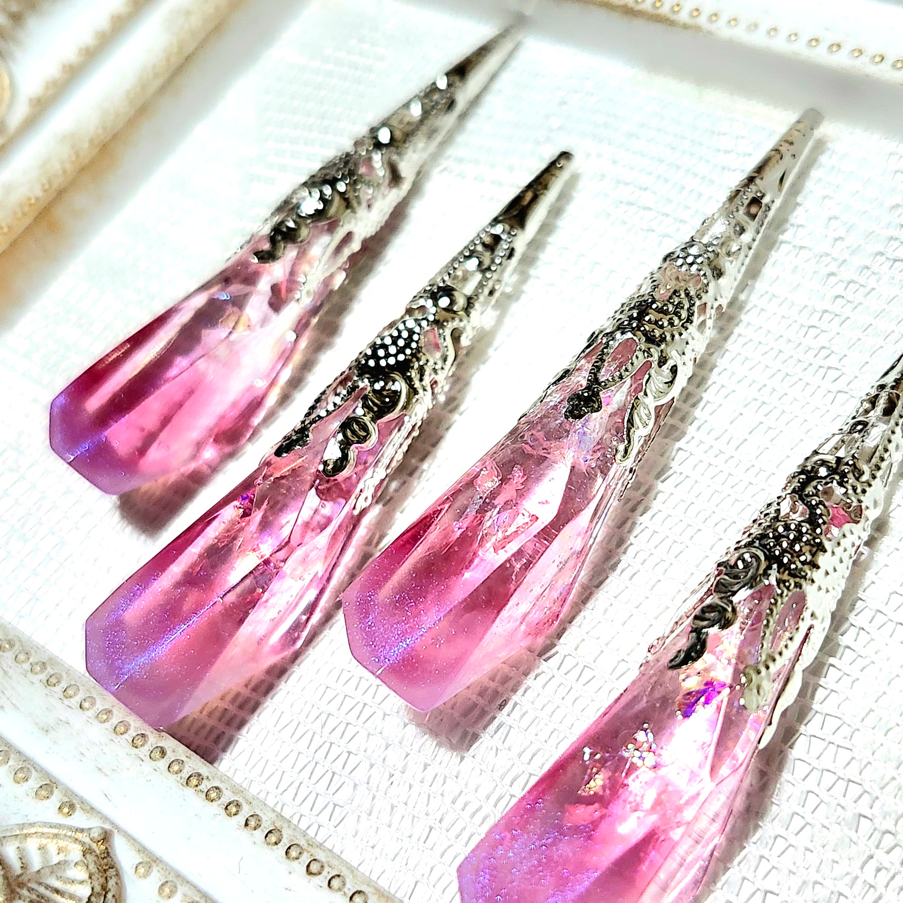 春を呼ぶ、桜色の鉱石モチーフの耳飾り。